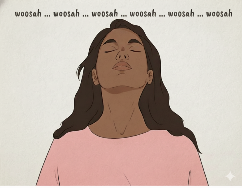 After completing the quiz, you’ll receive a personalized micro-ritual tailored to your specific mind-zone. This ritual includes targeted breathwork and the “Woosah” vocal anchor, designed to help you quickly re-regulate your nervous system and feel more centered in just a few moments.
